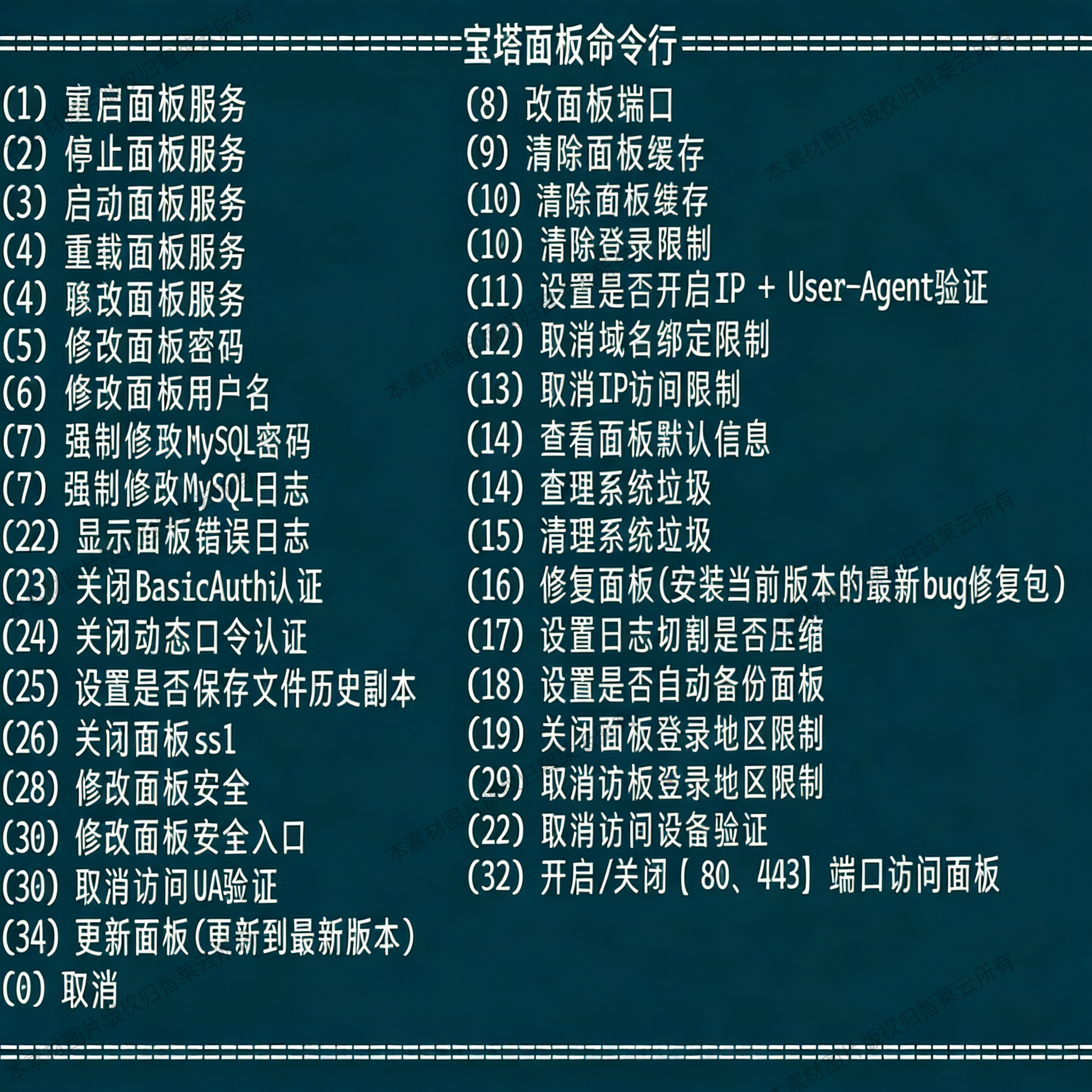 - 重置面板密码 → 对应菜单里的 (5) 修改面板密码